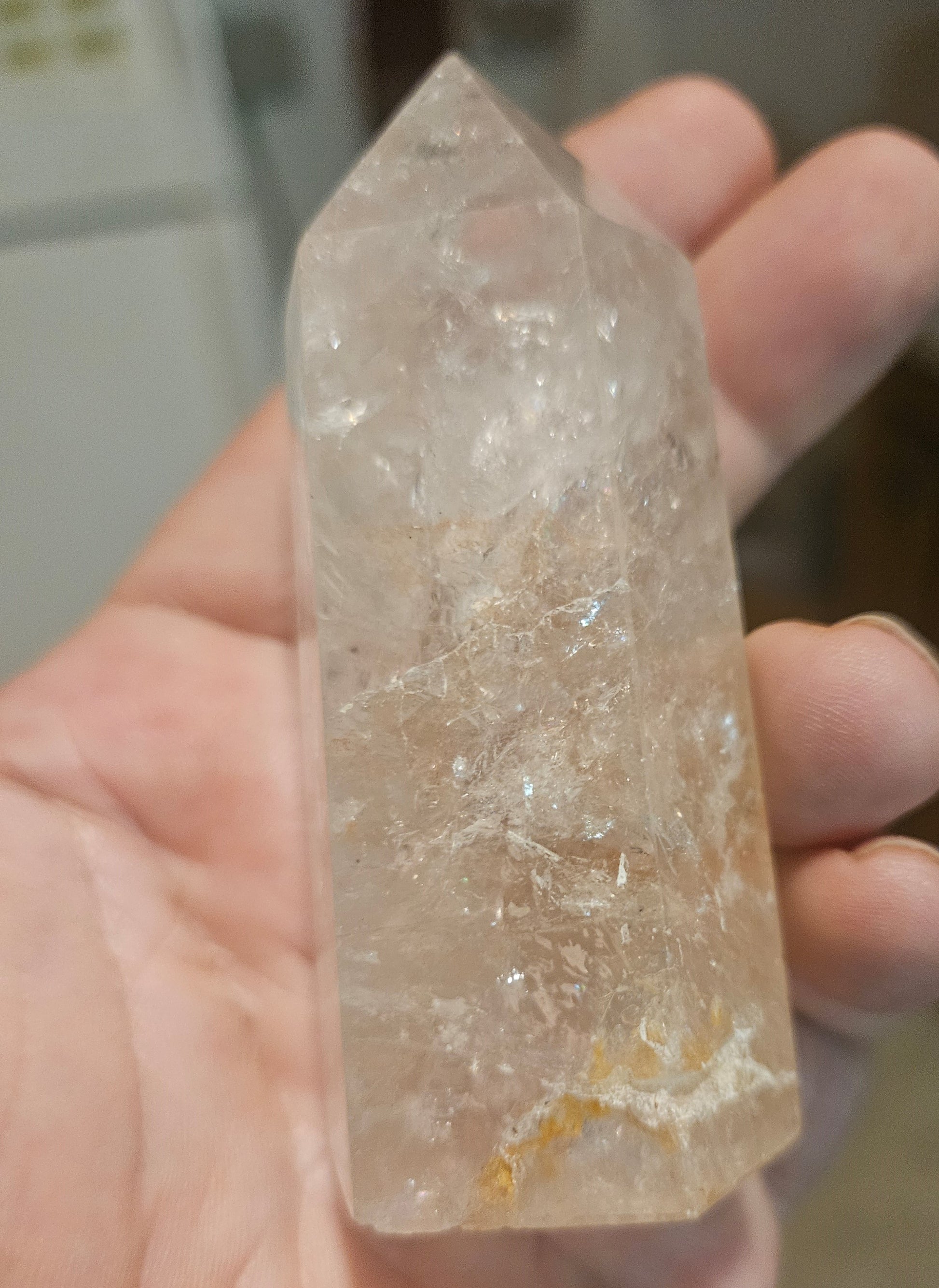 Crackle Quartz is a crystal that helps to adjust energy balance. Because the quartz has been superheated, it is fragile and can break easily. Due to the cracking effects from being super heated a Crackle Quartz is not recommended to be soaked in water or use salt to cleanse it as it may damage the crystal.