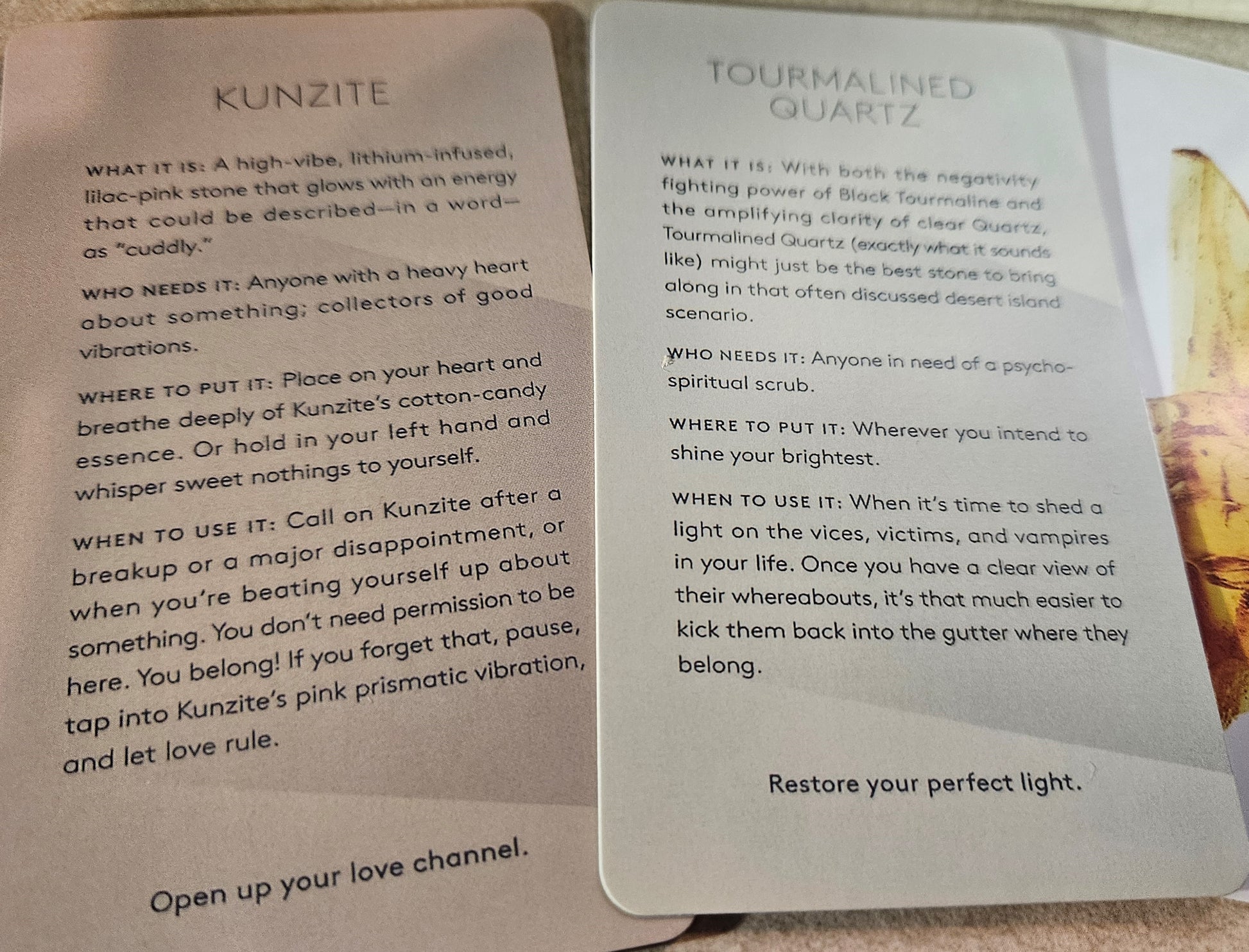 Energize your mind, body & spirit with this deck of 78 crystal cards. Each features a dazzling stone on the front and illuminating description on the back. There is no booklet with these. Great for beginners to get acquainted with their crystals!!