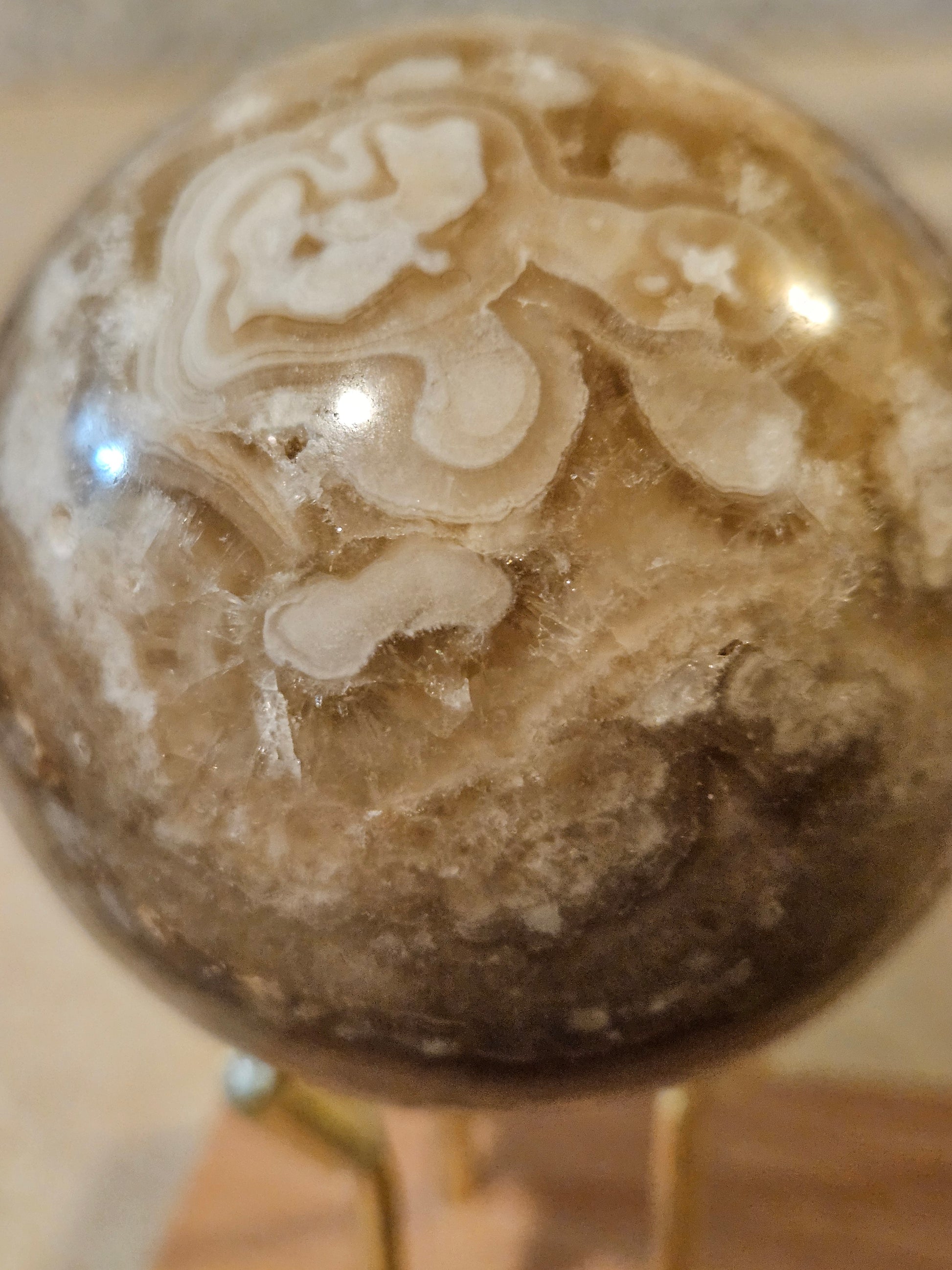 Druzy Snow Agate is a crystal that is known for its calming and grounding properties. It's believed to help bring balance and stability into your life. It can help you stay grounded and focused during challenging times, promoting clarity and rational thinking.