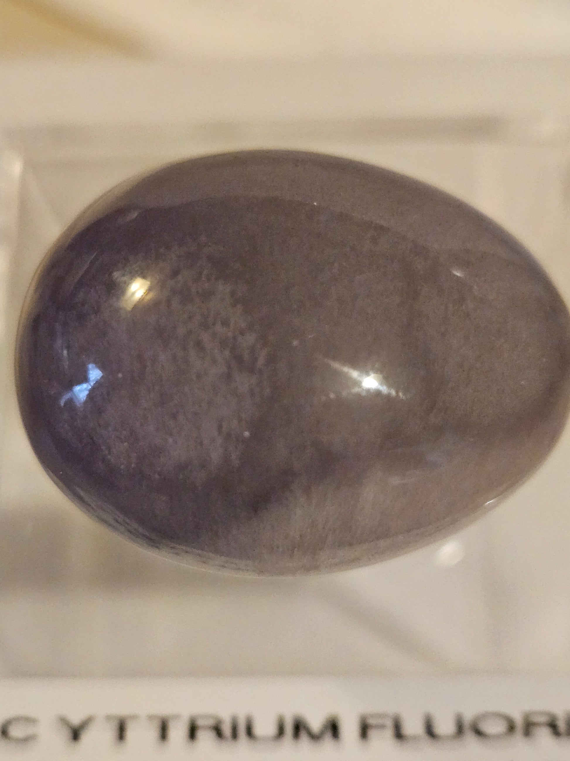 This is an intriguing, 1.4" tall, lilac colored Yttrium Fluorite specimen, also known as Yttrofluorite (fluorite containing an appreciable amount of the rare earth element yttrium). It has been shaped into a small egg and flawlessly polished to a glossy finish.