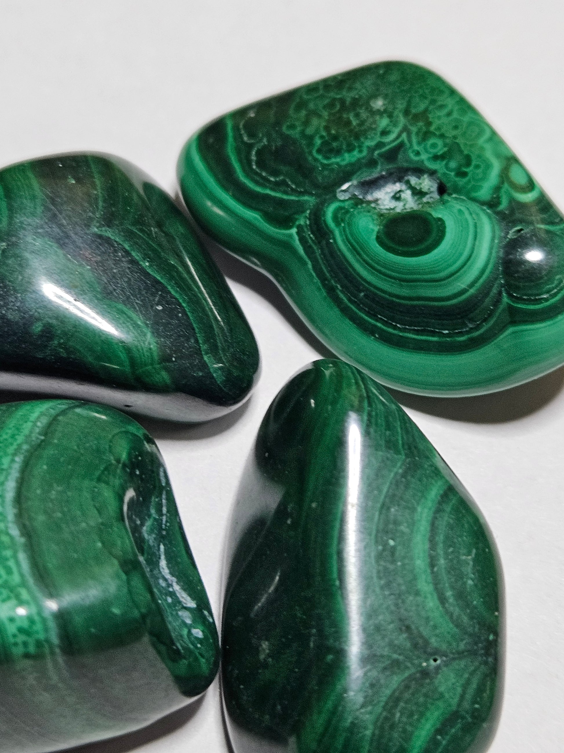 Malachite is known as the Stone of Transformation, symbolizing growth, personal change, and protection from negative energies. It is believed to facilitate healing and growth by helping individuals confront and release emotional patterns, encouraging self-reflection, and building confidence. Metaphysically, it's associated with the heart chakra, promoting love and compassion, and is thought to protect against psychic and electromagnetic pollution.