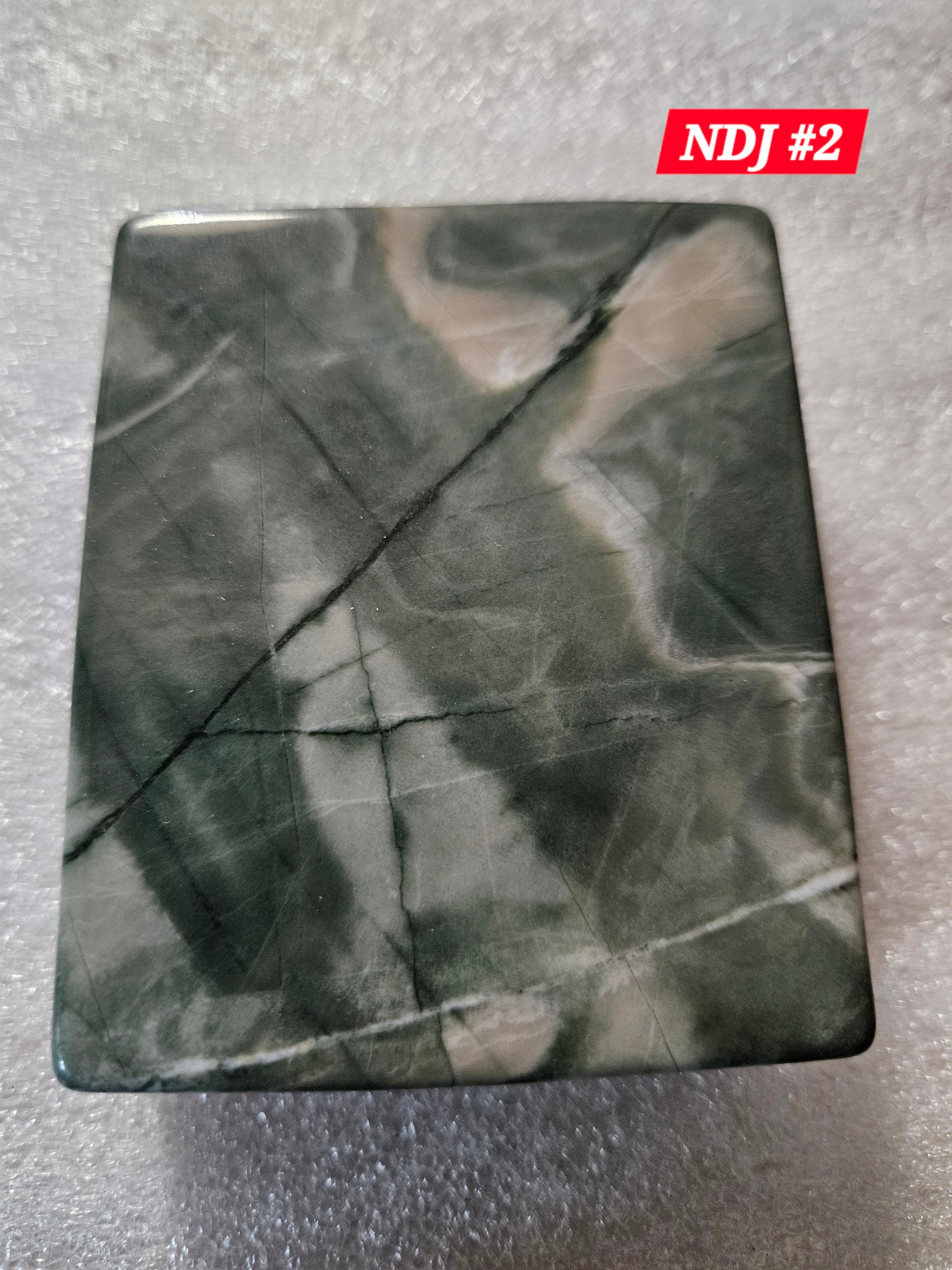Nine Dragon Jade, also known as Hua An Jade, is a variety of Jade that crystallizes in mass formation. The color is medium to dark green with brown streaks throughout that can range from beige to tan. This minerally is newly discovered out of the Nine Dragon River North Stream in Hua An County, in Fujian Province, China. The decorative countertop industry was the first commercial application for Nine Dragon Jade and has become very popular in the surface industry.
