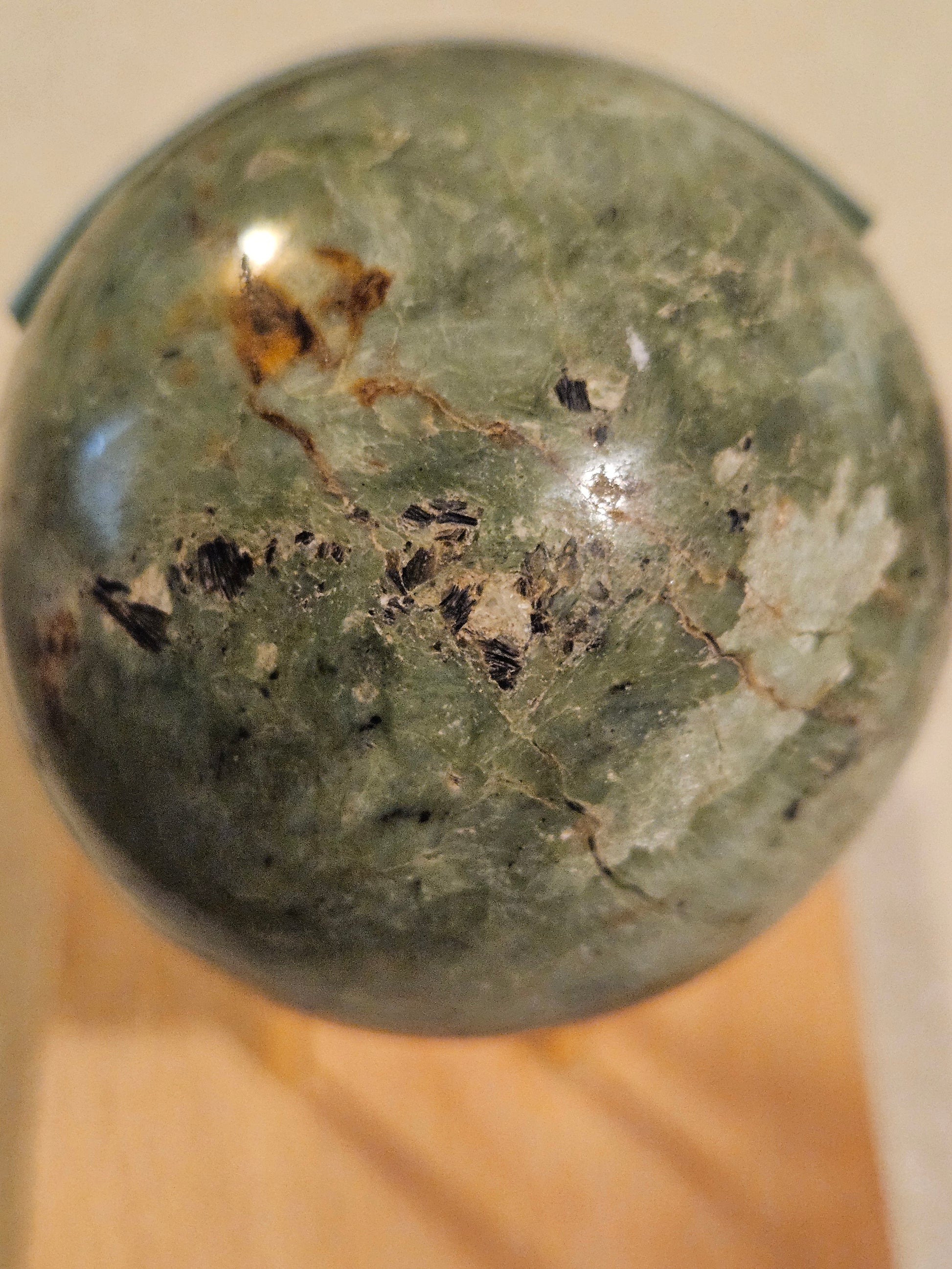 Olive Opal is helpful for raising one's spirits and letting go of preconceived ideas and assumptions, it strengthens the will to live and gives meaning to life. It is a cleansing and rejuvenating gemstone that promotes emotional recovery and helps your mind filter information. It is associated with the throat and heart chakras.