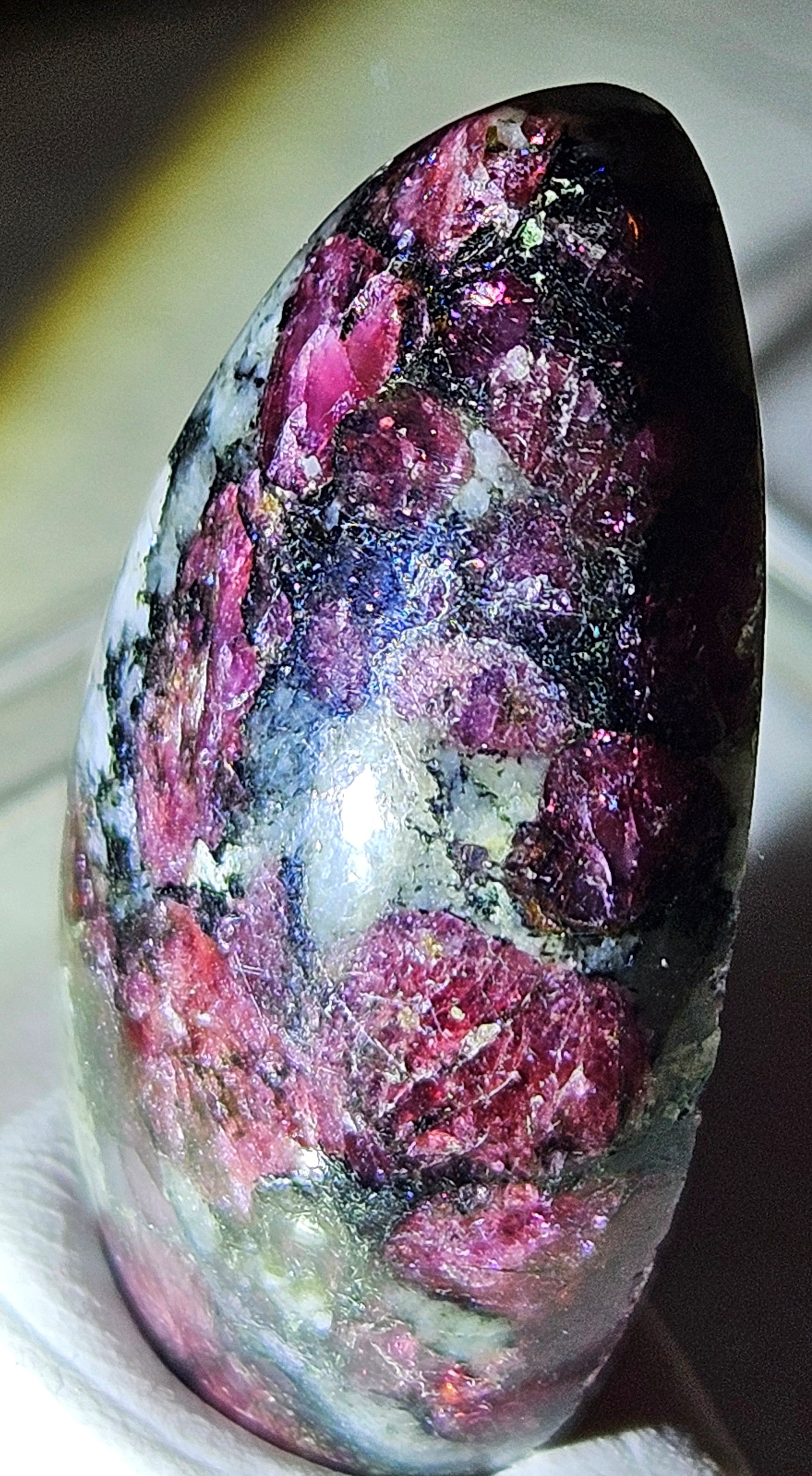 Eudialyte is a stone of the heart. Its color is a beautiful mix of purple, red, pink,
