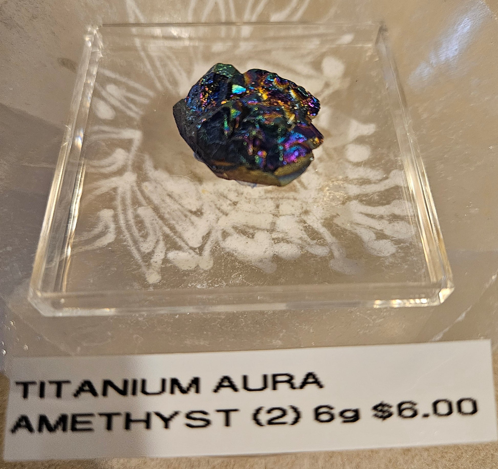 Titanium aura amethyst combines the properties of amethyst with the enhanced energy of titanium bonding, resulting in a stone said to promote emotional balance, spiritual growth, and enhanced aura. Amethyst is known for its calming and protective qualities, while titanium bonding is believed to amplify the stone's energy and ability to clear energetic blockages.